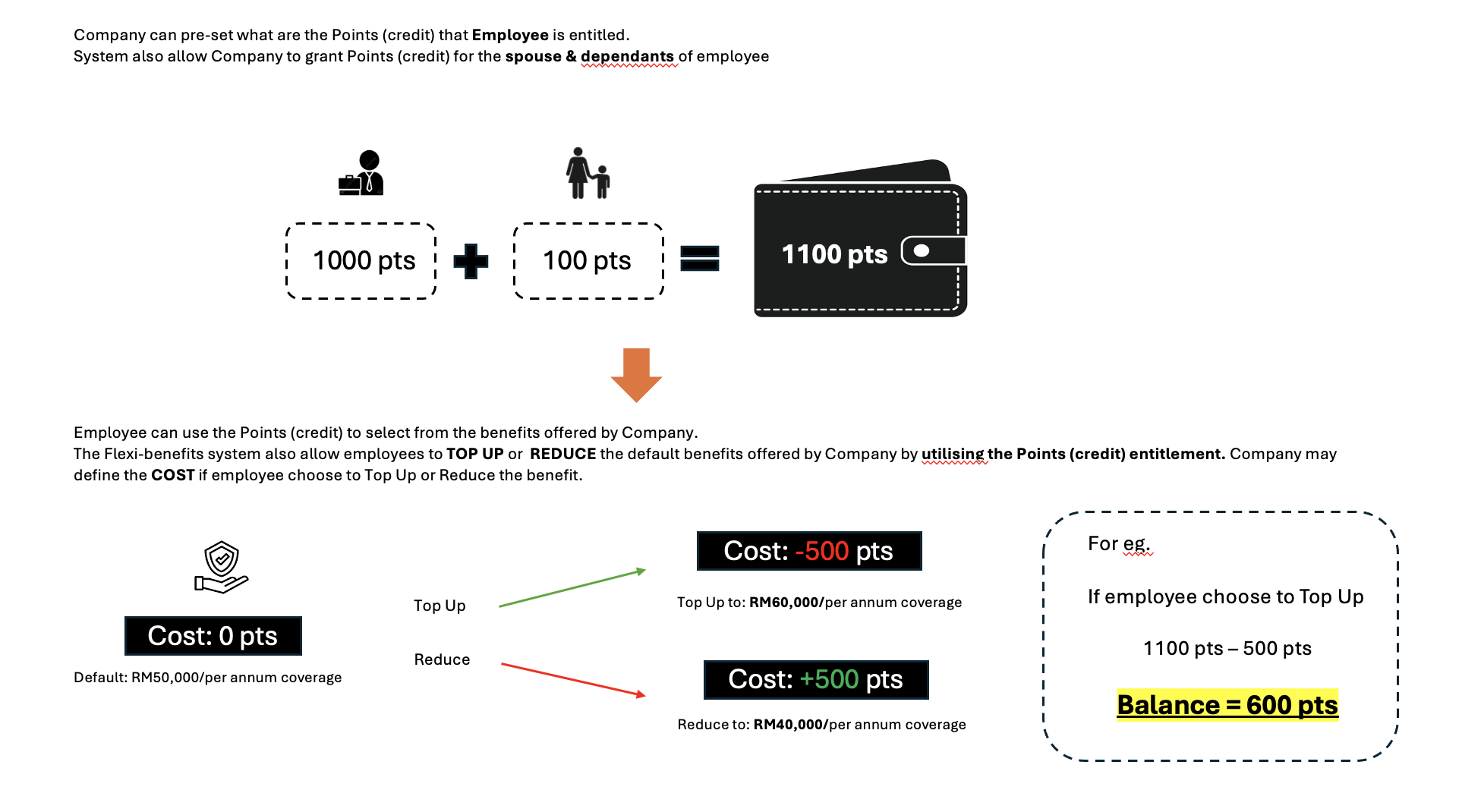 - The Company grants the employee (and or their family) a certain amount of Flexi-Benefits per year