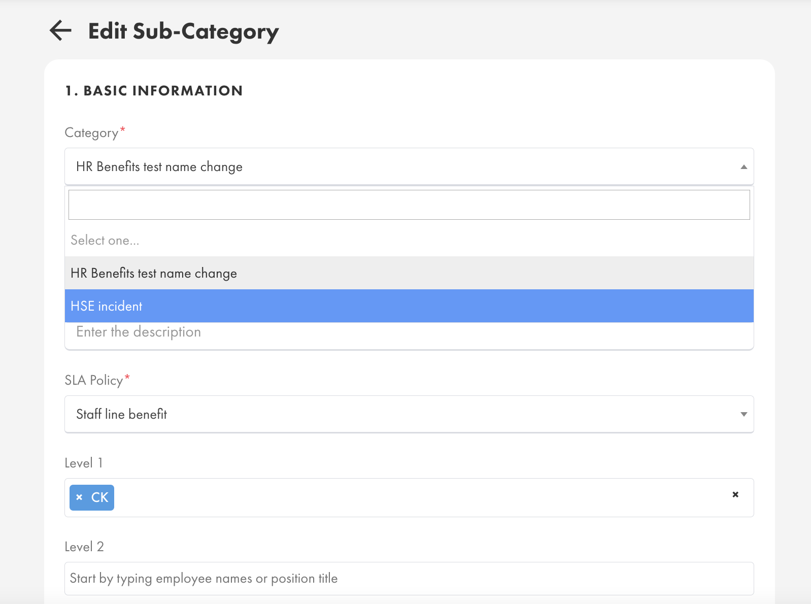 - Go to Helpdesk > Settings > Select the Sub-Category that you want to move (transfer) to another Category > Edit
